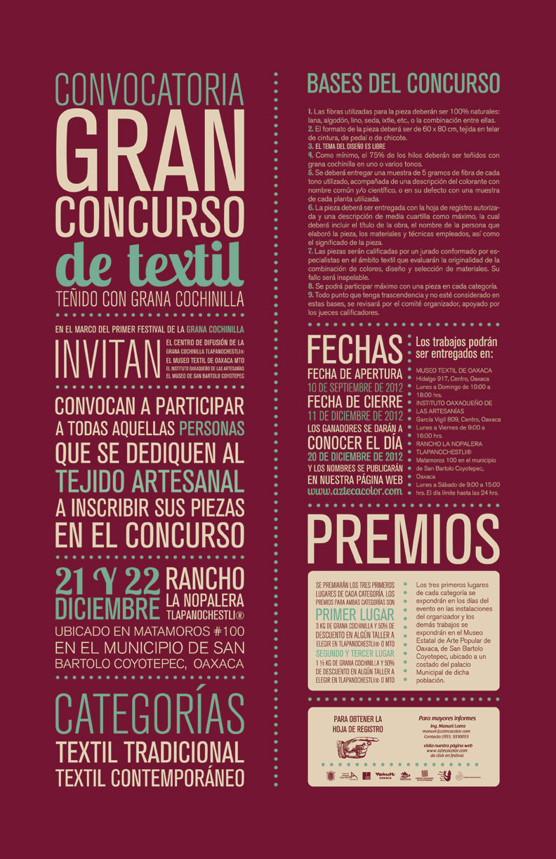 Del 27 de enero al 17 de mayo 2012, Museo Textil de Oaxaca.